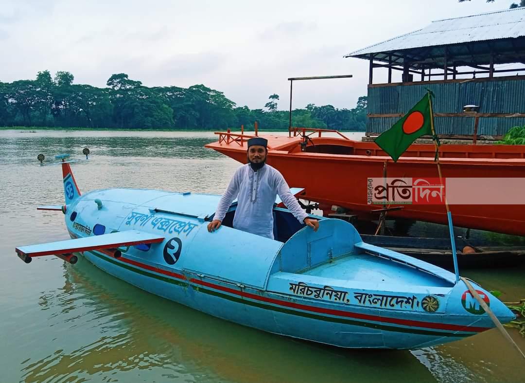ভিন্ন ধরনের এই বিমানটি আকাশ পথের ছোঁয়া দিয়ে যাচ্ছেন জলপথের নদ-নদীতে। বিমানটি তৈরি করতে সময় লেগেছে দুই বছর। দূর থেকে দেখলে অনেকটাই বিমানের মত মনে হরেও অবসর সময় কাটানোর জন্য এটি একটি নৌযান।
