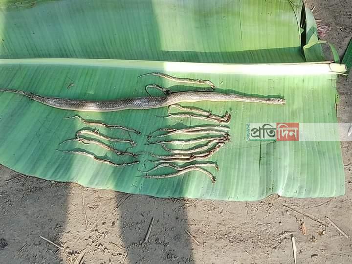 সম্রাট আলাউদ্দিন, ধামরাই (ঢাকা) : ঢাকার ধামরাইয়ে রাসেলস ভাইপার সাপের ভীতির মধ্যে মারা পড়ছে অন্য প্রজাতির সাপ। গত ১০ দিনে অন্তত অর্ধ শতাধিকের বেশি সাপ পিটিয়ে মারার ঘটনা ঘটেছে। তবে খোঁজ নিয়ে দেখা গেছে, পিটিয়ে মারা সাপের বেশিরভাগই নির্বিষ। আর রাসেলস ভাইপার দেখা যাওয়ার তথ্যগুলোও গুজব।গত ১৬ জুন ফেসবুকে ছড়িয়ে পড়া একটি খবরে দাবি করা হয়, ধামরাইয়ের গাংগুটিয়া ইউনিয়নের জালসা গ্রামে স্থানীয়রা একটি রাসেলস ভাইপার সাপ পিটিয়ে মেরেছেন।