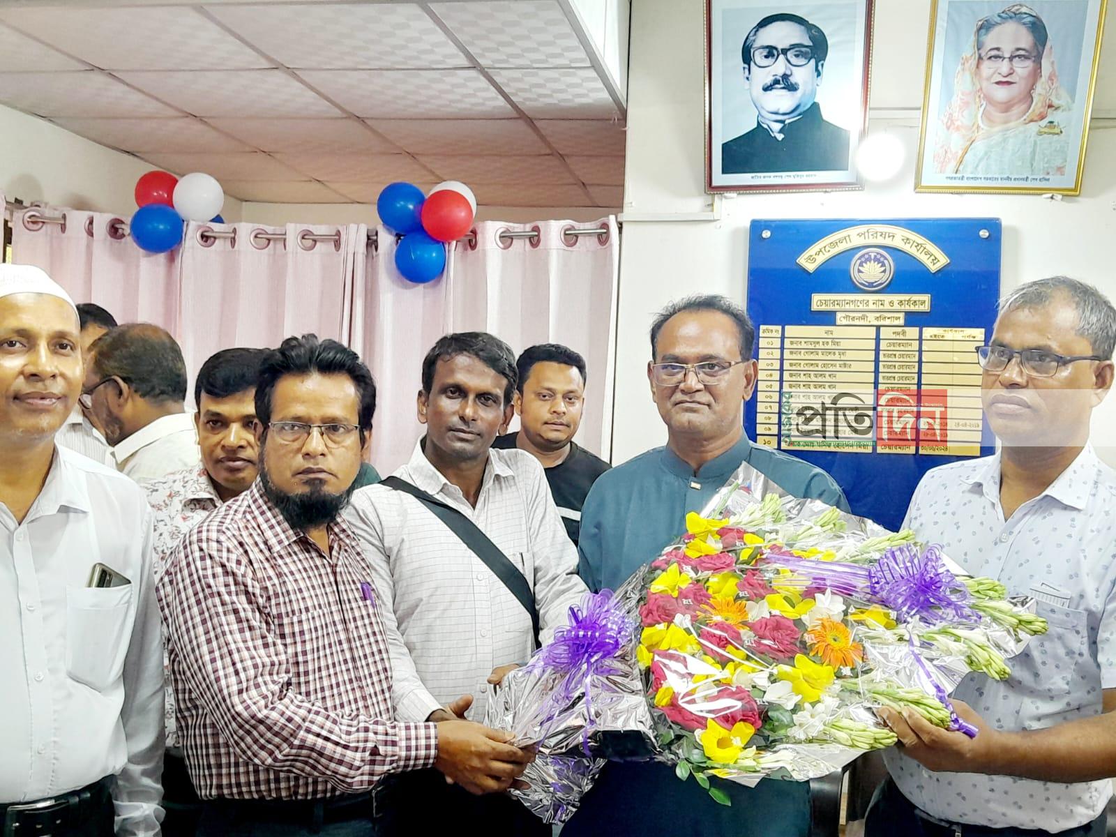 বরিশালের গৌরনদী উপজেলার নবনির্বাচিত চেয়ারম্যান মোঃ মনির হোসেন মিয়াকে মঙ্গলবার (০৯ জুলাই) সকাল ১০টার সময় গৌরনদী উপজেলা বাংলাদেশ শিক্ষক সমিতি সাখার পক্ষ থেকে ফুলের তোরা দিয়ে শুভেচ্ছা ও অভিনন্দন জানান।