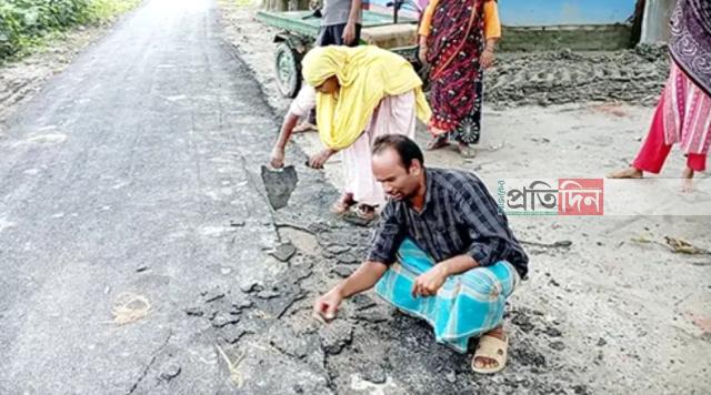 পরদিন সকালে এলাকার লোক জন সেই রাস্তা দিয়ে হাটলে জুতার সাথে উঠে আসে সিল কোড করা নতুন কার্পেটিং। বিষয়টি জানিয়ে অভিযোগ করা হয় উপজেলা প্রকৌশলীর কাছে। অভিযোগের এক সপ্তাহ পেরিয়ে গেলেও ব্যবস্থা নেয়নি কর্তৃপক্ষ। বিষয়টি নিয়ে স্থানীয় লোকজন একাধিকার উপজেলা প্রকৌশলী মাইদুল ইসলামকে জানালেও তিনি কোন ব্যবস্থা নেয়নি। লোকজন রাস্তা দিয়ে হাঁটলে জুতার সঙ্গে উঠে আসে ওই সড়কের কার্পেটিং। স্থানীয়দের অভিযোগ, ঠিকাদারের লোকজন স্থানীয়দের বাঁধা উপেক্ষা করে রাতের আঁধারে রাস্তায় নিম্নমানের পিচের কার্পেটিংয়ের কাজ করেছে। যা হাত দিয়ে টান দিলে বা পা দিয়ে ঘষা দিলেই উঠে যাচ্ছে। এতে চরম ক্ষোভ প্রকাশ করেন এলাকাবাসীরা ।