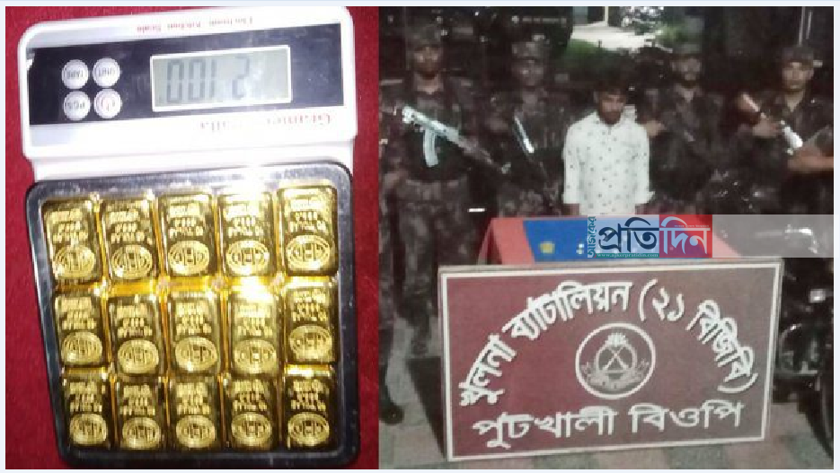বেনাপোল সীমান্ত পুটখালী থেকে দুই কেজি স্বর্ণের বারসহ এক পাচারকারী আটক
