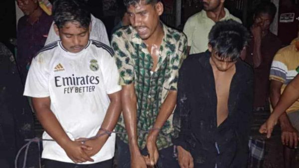 এলাকাবাসী তাদের জিজ্ঞাসাবাদ করলে তাদের কথাবার্তা গুলো অসামঞ্জস্যপূর্ণ উত্তর দিয়ে দৌড়ে পালানোর চেষ্টা করলে । এলাকাবাসী তাদেরকে রশি দিয়ে বেঁধে আটক করে গণধোলায় দিয়ে পুলিশকে খবর দেয় । পুলিশ গঠনা স্থল থেকে ওই চার যুবককে আটক করে থানায় নিয়ে আসে।