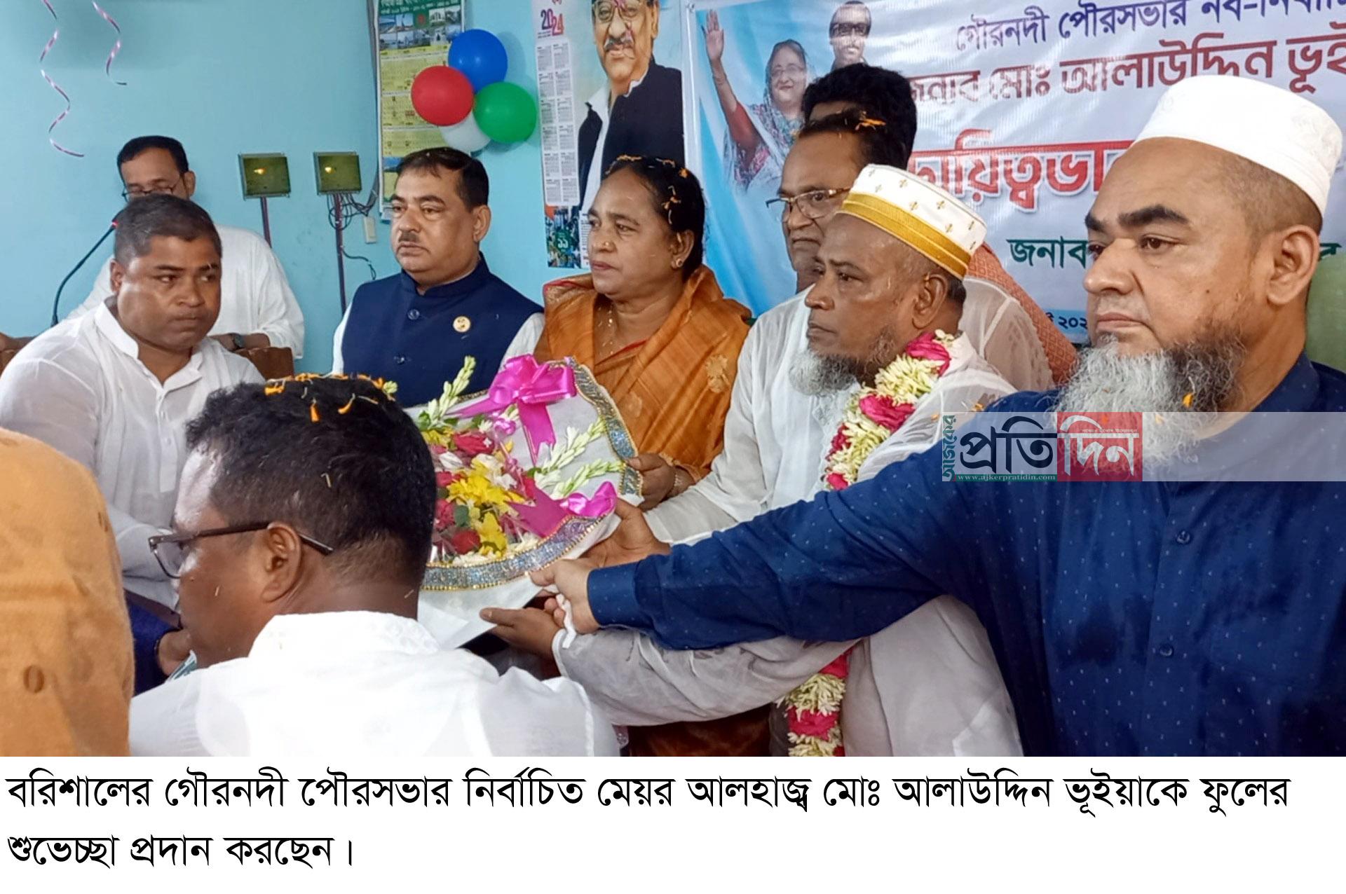 বরিশালের গৌরনদী পৌরসভার মেয়র পদে উপ-নির্বাচনে নিবার্চিত মেয়র আলহাজ্ব মোঃ আলাউদ্দিন ভূইয়া সোমবার দায়িত্বভার গ্রহন করেছেন।