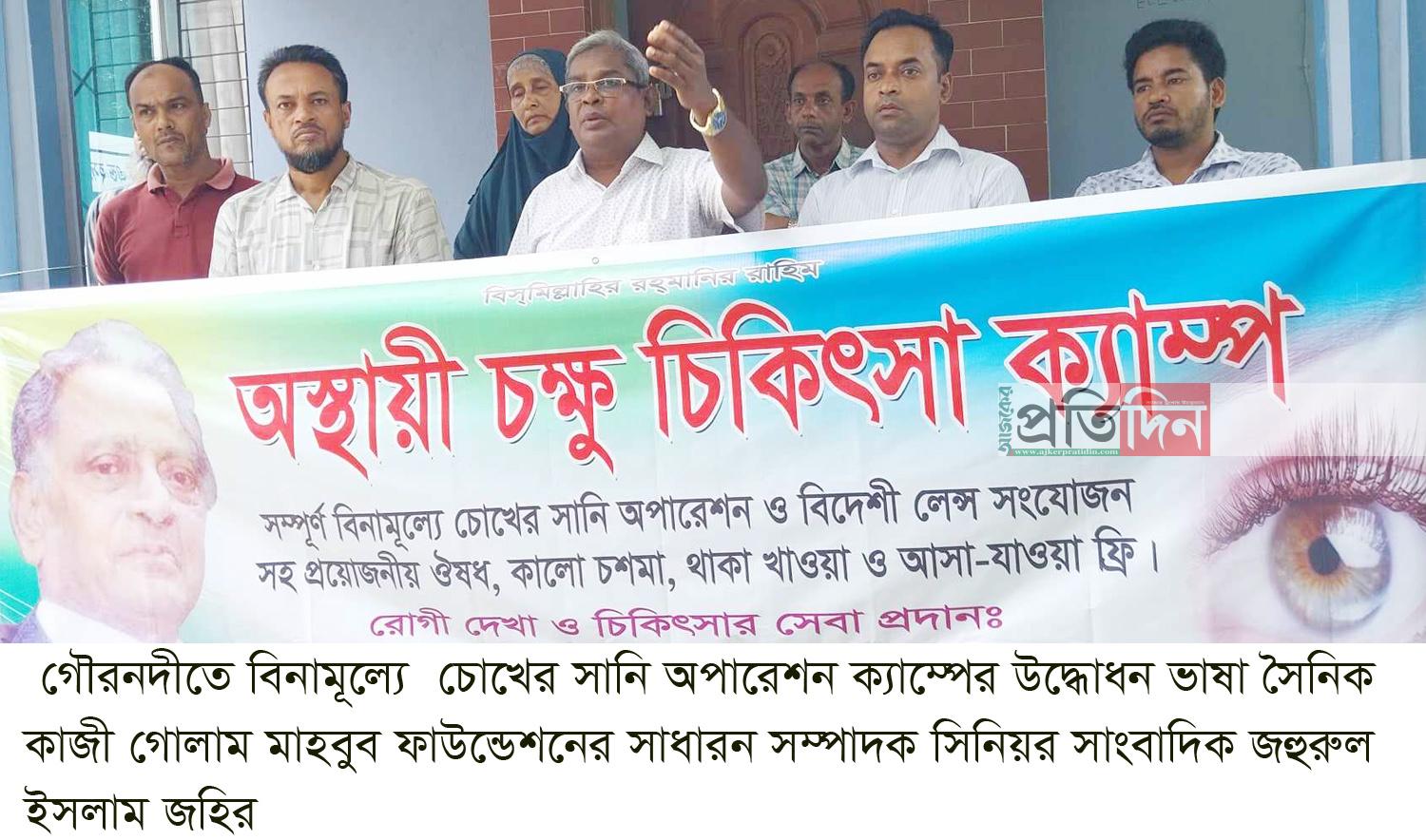 ভাষা সৈনিক কাজী গোলাম মাহবুব ফাউণ্ডেশনের ভাইস-চেয়ারম্যান খাদিজা আক্তারের সভাপতিত্বে উদ্ধোধনী অনুষ্ঠানে প্রধান অতিথি ছিলেন ভাষা সৈনিক কাজী গোলাম মাহবুব ফাউণ্ডেশনের সাধারন সম্পাদক ও গৌরনদী বিআরডিবির সাবেক চেয়ারম্যান সিনিয়র সাংবাদিক জহুরুল ইসলাম জহির। বিশেষ অতিথি ছিলেন ইস্পাহানি ইসলামিয়া চক্ষু হাসপাতালের চক্ষু চিকিৎসক ডাঃ মোঃ ইমাম রাগিব, আই ক্যাম্প প্রকল্প ক্যাম্পের ব্যবস্থাপক কাজী মিজানুর রহমান, ফাউন্ডেশনের সদস্য মোল্লা মাহফুজ, আব্দুল হাকিম, গৌরনদী রিপোটার্স ইউনিটির সাবেক সভাপতি পলাশ তালুকদার ও ফাউন্ডেশনের সদস্য মোল্লা নাজির হোসেন।