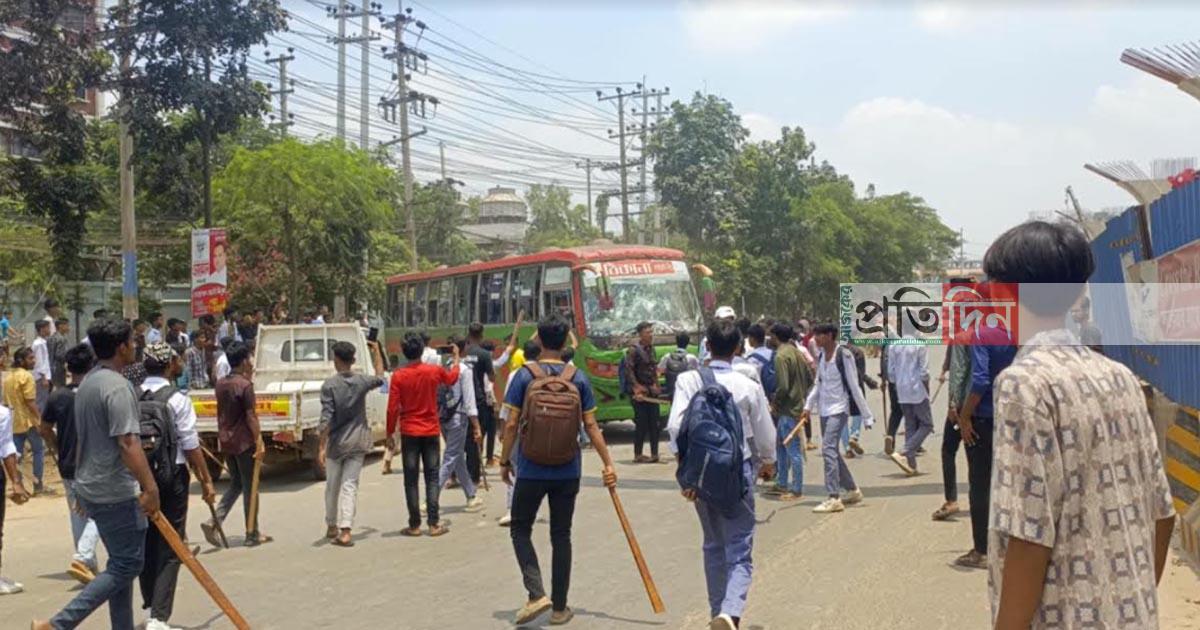 আশুলিয়ায় নবীনগর-চন্দ্রা মহাসড়কে শিক্ষার্থীদের বিক্ষোভ