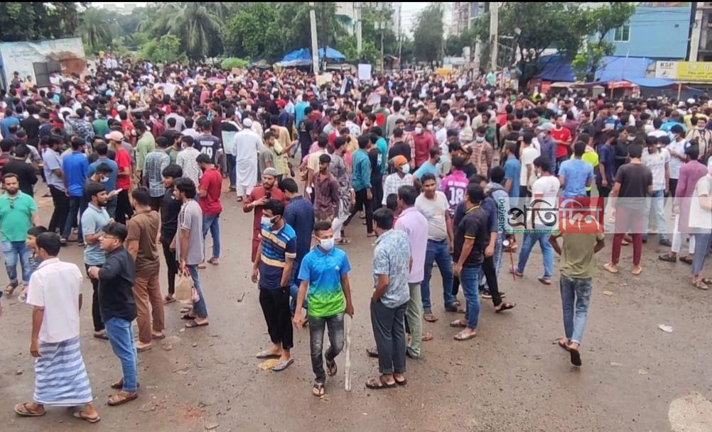 এসময় সড়কে আগুন ধরিয়ে ও গাছ ফেলে বেরিকেড সৃষ্টি করে শিক্ষার্থীরা । পুলিশের গুলিতে নিহত সকল শিক্ষার্থী ও সাধারণ জনতা হত্যার বিচারের দাবী সম্বলতি ব্যনার-ফেস্টুনসহ সড়কে অবস্থান নেয় তারা।