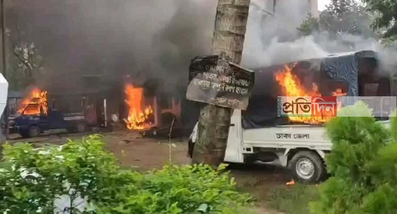 সাভার-আশুলিয়া ও ধামরাই থানায় আগুন; লুটপাট, নিহত বেড়ে ২৫