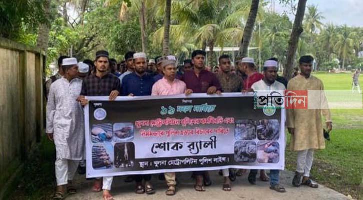 খুলনা: কেন্দ্রীয় কর্মসূচির অংশ হিসেবে ১১ দফা দাবিতে অনড় অবস্থানে রয়েছে খুলনার পুলিশ সদস্যরা। শুক্রবার (৯ আগস্ট) বাদ জুমা খুলনা মেট্রোপলিটন পুলিশ (কেএমপি) লাইনসের পুলিশের কর্মবিরতি ও পুলিশ হত্যার দাবিতে শোক র্যালি করেছেন তারা।