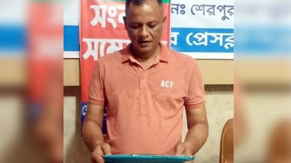 শেরপুরে ভূমিদস্যুদের থাবা থেকে বসতবাড়ি রক্ষার দাবিতে ভুক্তভোগীর সংবাদ সম্মেলন