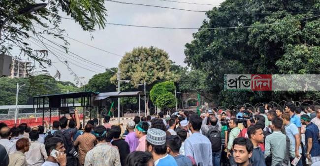 আন্দোলনকারী ছাত্র-জনতা শুক্রাবাদ মোড় থেকে ৩২ নম্বর ও মেট্রো শপিং মলের সামনে অবস্থান নিয়ে আছেন। একটু পর পর মিছিল নিয়ে বের হচ্ছেন। ধানমন্ডি ২৭ ঘুরে আবার ৩২ এসে জড়ো হচ্ছেন অনেকে। আবার ধানমন্ডি ৩২ লেক পাড়ও ছাত্রদের দখলে রয়েছে। তাদের প্রত্যেকের হাতে লাঠি ও পাইপ রয়েছে।