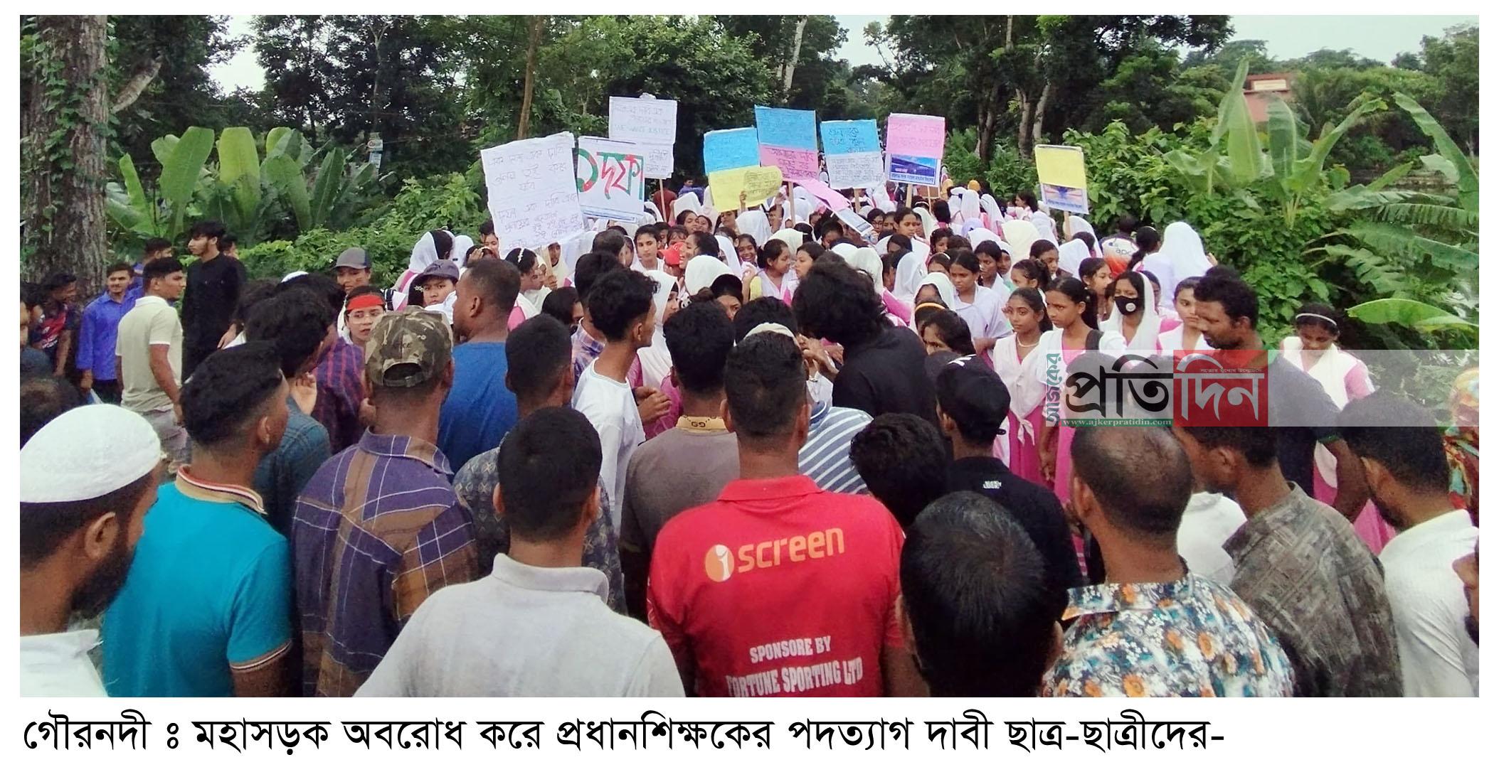 গৌরনদীতে সড়ক অবরোধ করে প্রধানশিক্ষকের পদত্যাগ দাবী