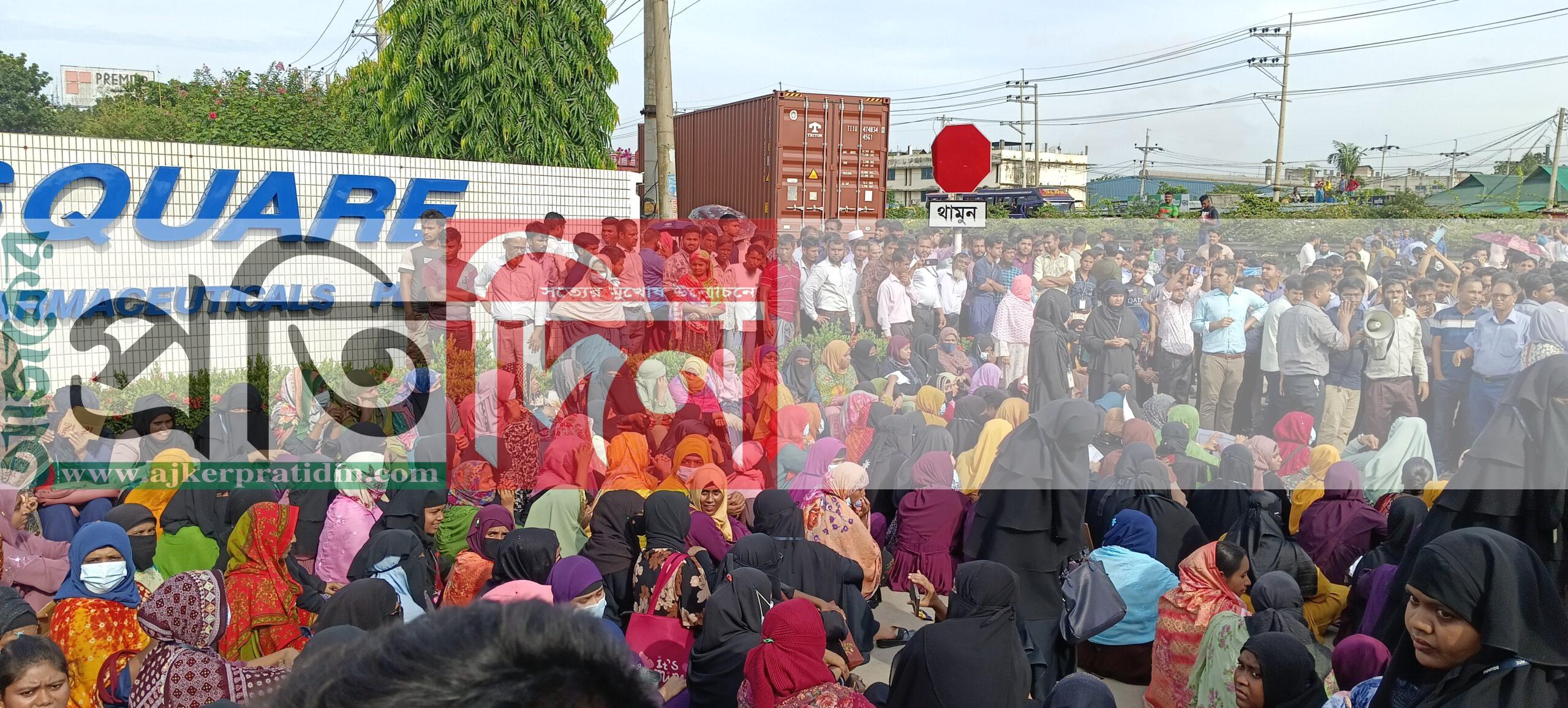 কারখানার শ্রমিকেরা জানান, স্কয়ার ফার্মাসিউটিক্যালস লিমিটেড নামের ওই কারখানার কর্তৃপক্ষ শ্রমিকরা ১০ বছর চাকরি করলেও পার্মানেন্ট করা হয়নি। প্রত্যেক শ্রমিককে দুই বেলা খাবার পাশ দিতে হবে। খাবার ক্ষেত্রে কোন প্রকার বৈষম্য রাখা যাবে না। খাবার মান উন্নয়ন করতে হবে। খাবার মেনু পরিবর্তন করতে হবে । সব মিলিয়ে ২১টি দফা বাস্তবায়নের দাবি জানিয়ে আজ সকালে শ্রমিকেরা কারখানায় কাজে যোগ না দিয়ে বিক্ষোভ শুরু করেন।