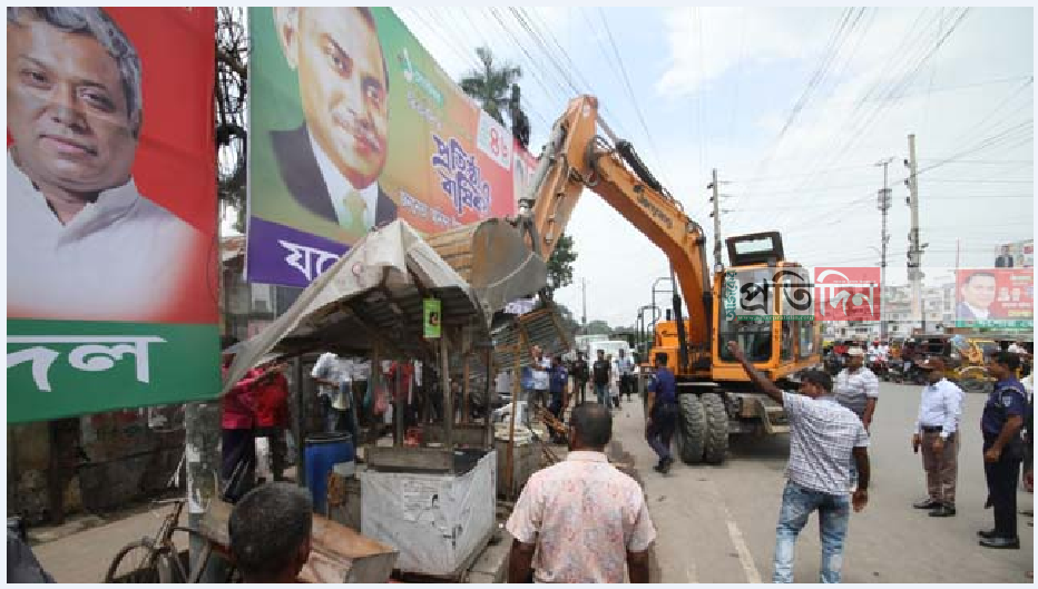 যশোর সদর বিভিন্ন এলাকায় অবৈধ স্থাপনা উচ্ছেদ অভিযান