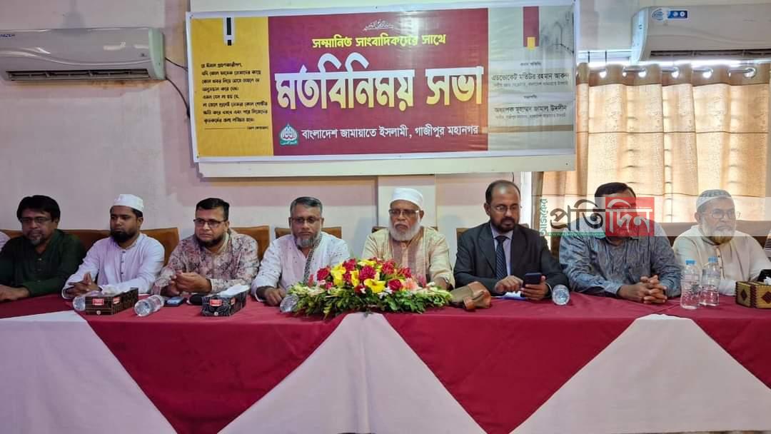 গাজীপুরে বাংলাদেশ জামায়াতে ইসলামী গাজীপুর মহানগর শাখার উদ্যোগে সাংবাদিকদের সাথে মতবিনিময় সভা অনুষ্ঠিত হয়েছে। সোমবার সকালে মহানগরীর শিববাড়ি এলাকায় এক রেস্টুরেন্টে এ মতবিনিময় সভা অনুষ্ঠিত হয়।