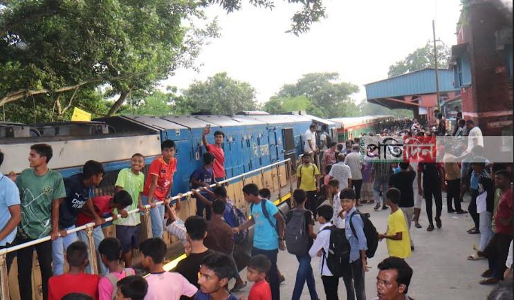 রেলপথে রংপুর বিভাগের প্রবেশদ্বার ও গাইবান্ধার শিল্পাঞ্চলখ্যাত গোবিন্দগঞ্জ উপজেলার মহিমাগঞ্জ রেলস্টেশনে রাজধানীর সাথে চলাচলকারী বুড়িমারী এক্সপ্রেস ট্রেনের যাত্রাবিরতির দাবিতে রেলপথ অবরোধ করে বিক্ষোভ করছেন কয়েক হাজার মানুষ। এ সময় ঢাকা থেকে বুড়িমারিগামী ৮০৯ আপ বুড়িমারী এক্সপ্রেস ও রংপুরগামী ৭৭১আপ রংপুর এক্সপ্রেস ট্রেন দুটি আটকে পড়ে। এ সময় ট্রেন যাত্রীদের মাঝে ঠান্ডা পানি ও শুকনো খাবার সরবরাহ করেন আন্দোলনকারীরা। এ ছাড়াও জরুরী রোগির স্বাস্থ্যসেবার জন্য কয়েকজন চিকিৎসকও তৈরি রাখা হয় স্টেশনে।