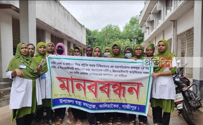 কালিয়াকৈরে নার্সদের কটূক্তি করার প্রতিবাদে মানববন্ধন