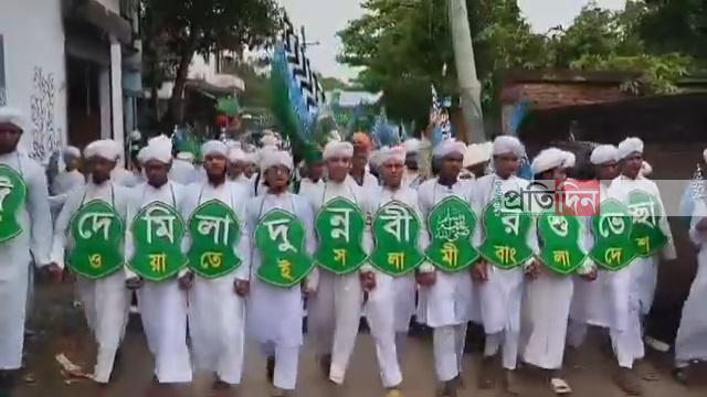 মুন্সীগঞ্জ প্রতিনিধিঃ পবিত্র ঈদে মিলাদুন্নবী (সা:) সাল্লাল্লাহু আলাইহি ওয়াসাল্লাম উপলক্ষে দা'ওয়াতে ইসলামী বাংলাদেশ মুন্সীগঞ্জ জেলার উদ্যোগে বিশাল জশনে জুলুস বের করেছে। সোমবার (১৬ সেপ্টেম্বর) জেলা শহরের পশ্চিম দেওভোগ আলা হযরত রোড, মাদরাসাতুল মদিনা ও জামিয়াতুল মদিনা থেকে বের হয় জশনে জুলুস।
