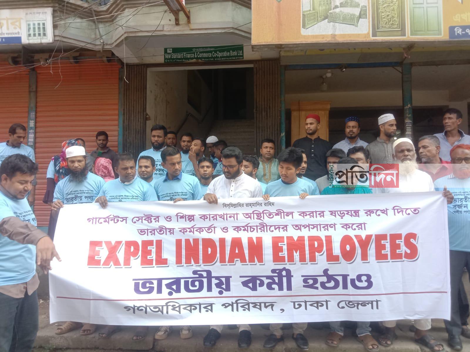 নিজস্ব প্রতিবেদক : ঢাকার সাভারে"ভারত খেদাও, বাংলাদেশ বাঁচাও” এই শ্লোগানকে সামনে রেখে ভারতীয় পণ্য বর্জন ও গার্মেন্টস শিল্পকে অস্থিতিশীল করার ষড়যন্ত্র রুখে দিতে বাংলাদেশে পোষাক শিল্পসহ অন্যান্য শিল্পে ভারতীয় কর্মকর্তা ও কর্মচারীদের অপসারণের দাবিতে র্যালি ও মতবিনিময় সভা করেছে গণঅধিকার পরিষদ।