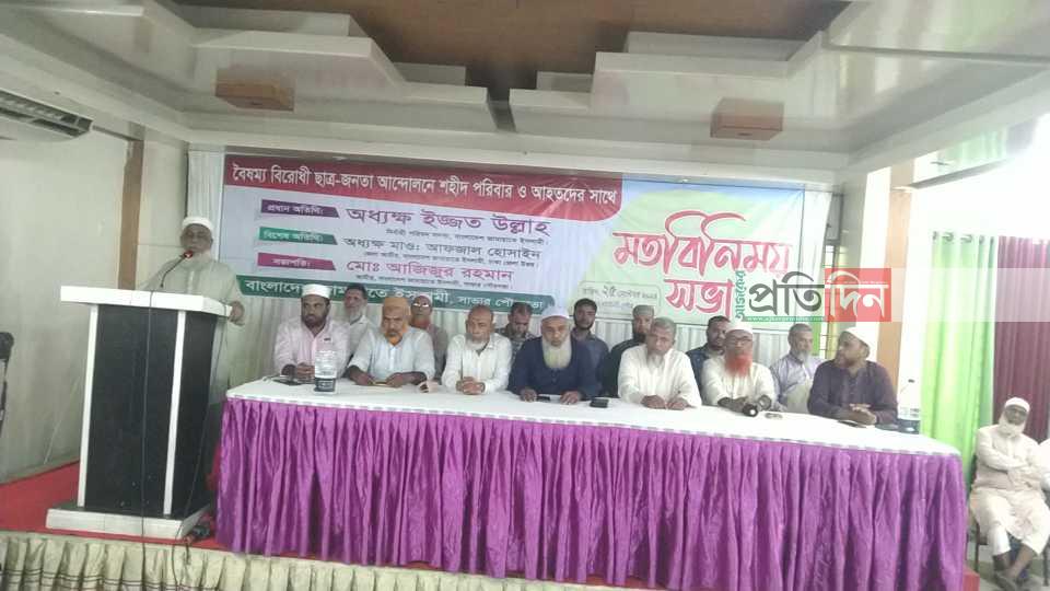 সাভার (ঢাকা) প্রতিনিধি : ঢাকা জেলা সাভার পৌরসভা জামায়াতে ইসলামীর উদ্যোগে বৈষম্য বিরোধী ছাত্র-জনতার আন্দোলনে শহীদদের পরিবার ও আহতদের সাথে মতবিনিময় সভা অনুষ্ঠিত।