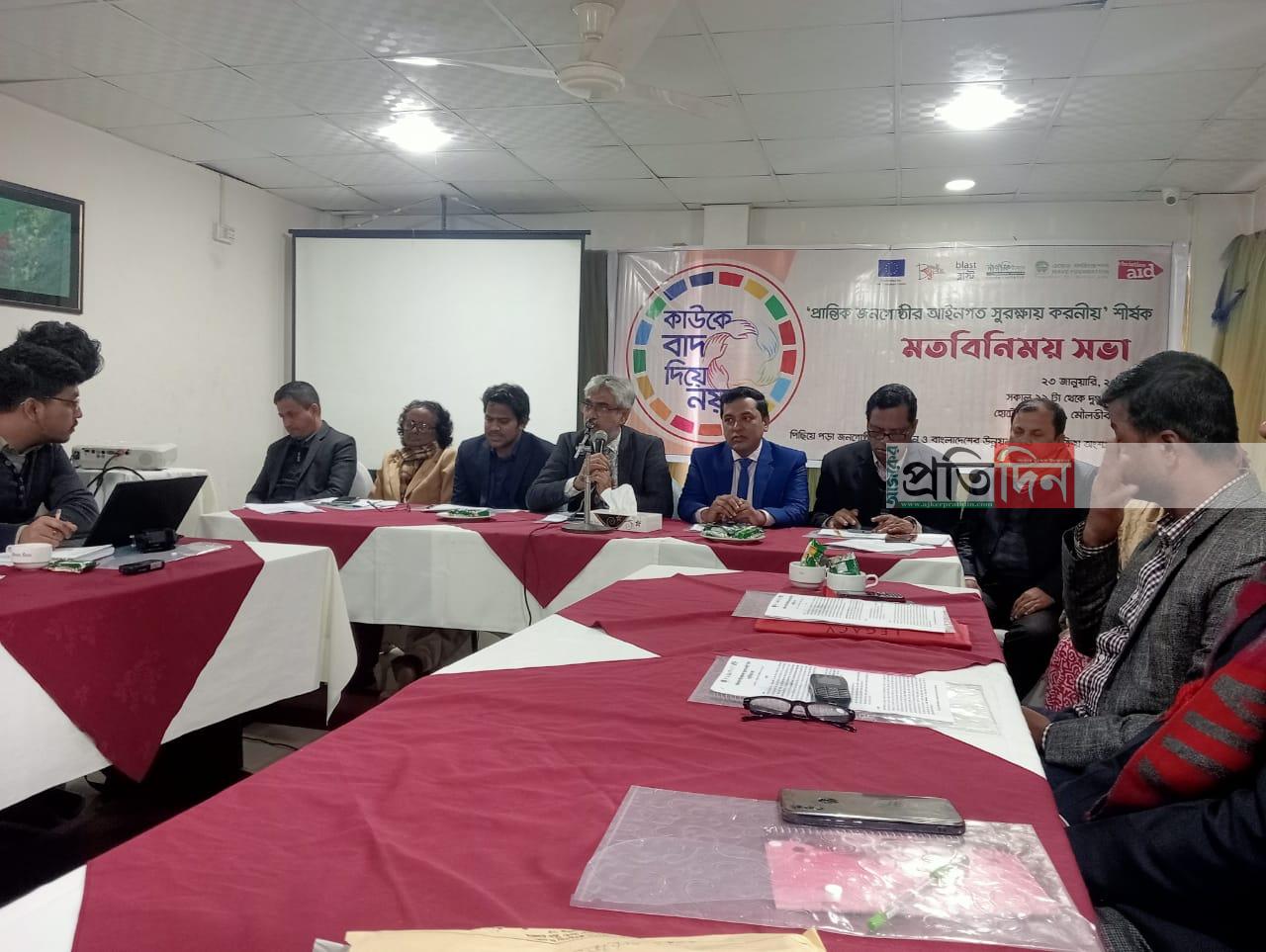 মৌলভীবাজার প্রতিনিধিঃ মৌলভীবাজারে ইউরোপিয়ান ইউনিয়নের অর্থায়নে, পিছিয়ে পড়া জনগোষ্ঠির ক্ষমতায়ন ও উন্নয়ন প্রক্রিয়ায় সক্রিয় অংশ গ্রহন প্রকল্পের আওতায় প্রান্তিক জনগোষ্ঠির আইনগত সুরক্ষায় করনীয় শীর্ষক মত বিনিময় সভা অনুষ্ঠিত হয়েছে (২৩/ জানুয়ারী) শহরের রেষ্ট ইন হোটেলের কনফারেন্স হলে।