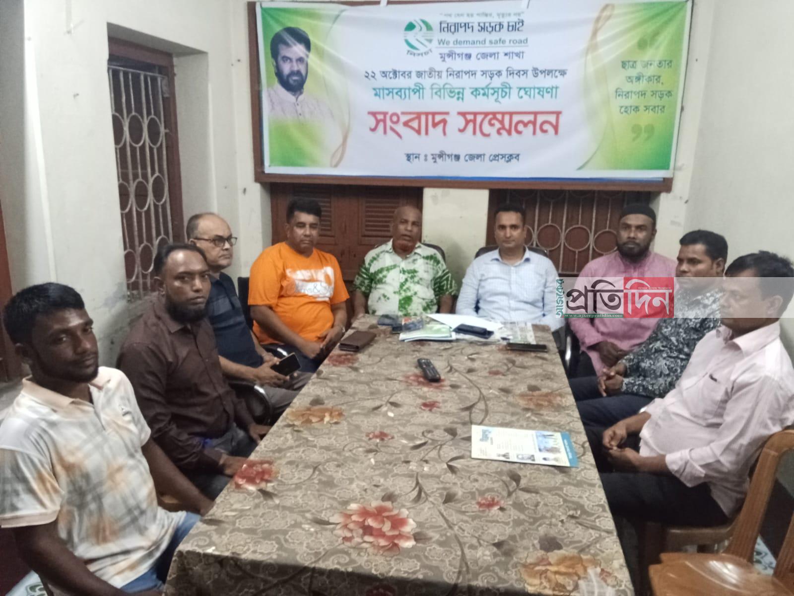নিরাপদ সড়ক চাই মুন্সীগঞ্জ জেলা শাখার উদ্যোগে সড়ক কে নিরাপদ করার লক্ষে মাসব্যাপী কর্মসূচির অংশ হিসাবে আজ ১লা অক্টোবর বিকাল ৪ঘটিকায় মুন্সীগঞ্জ জেলা প্রেস ক্লাবের সম্মেলন কক্ষে একটি গোলটেবিলে আয়োজন করা হয় ।