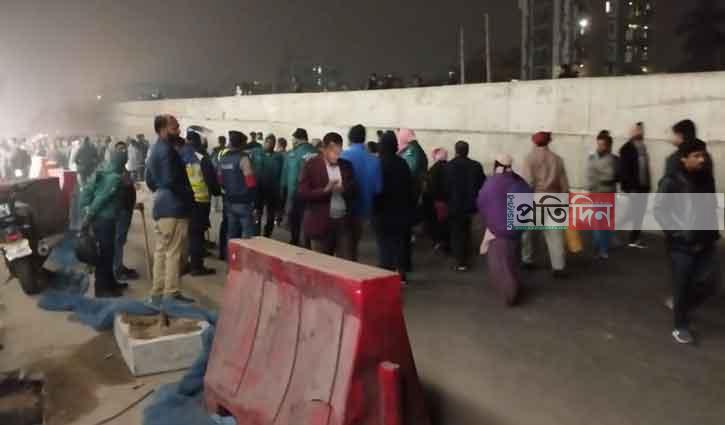 টঙ্গী : গাজীপুরের টঙ্গীতে ট্রাকের চাপায় এক পোশাক শ্রমিক নিহত হয়েছে। আজ মঙ্গলবার সন্ধ্যা সাতটার দিকে ঢাকা-ময়মনসিংহ মহাসড়কের টঙ্গীর গাজীপুরা বাস স্ট্যান্ড এলাকায় এ দুর্ঘটনা ঘটে। ঘটনার পর ওই কারখানার শ্রমিকরা ঢাকা-ময়মনসিংহ মহাসড়ক অবরোধ করে রাখে। মৃত ওই ব্যক্তির নাম আতিকুর রহমান (৪০)। সে গাইবান্ধা জেলার সদর থানার বাহাদুরপুর গ্রামের আব্দুর রহমানের ছেলে। দুর্ঘটনার পর পুলিশ নিহতের লাশ উদ্ধার করে।
