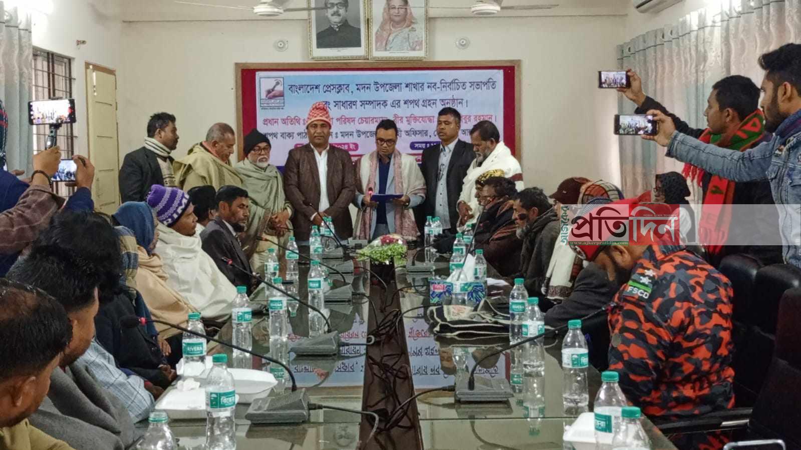 বাংলাদেশ প্রেসক্লাব মদন শাখার নবনির্বাচিত সভাপতি ও সাধারণ সম্পাদকের শপথ গ্রহণ