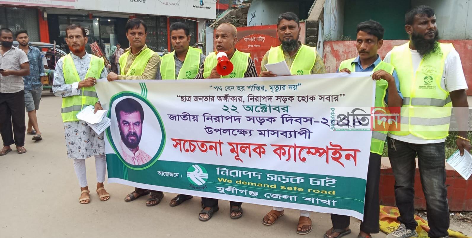 নিরাপদ সড়ক চাই নিসচা মুন্সীগঞ্জ জেলা শাখার উদ্যাগে সচেতনতা মূলক ক্যম্পেইন অনুষ্ঠিত