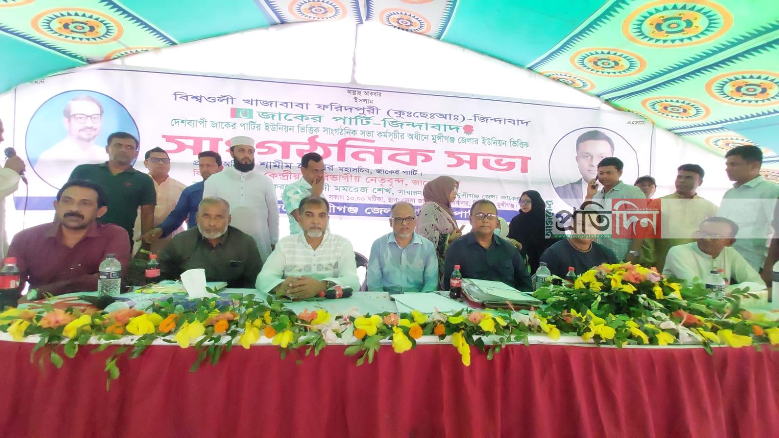 মুন্সিগঞ্জ জেলা জাকের পার্টি আয়োজিত সাংগঠনিক সভায় জেলা জাকের পার্টির সাধারণ সম্পাদক মমরেজ শেখের সভাপতিত্বে পার্টির কেন্দ্রীয় ও বিভাগীয় নেতৃবৃন্দ উপস্থিত ছিলেন।