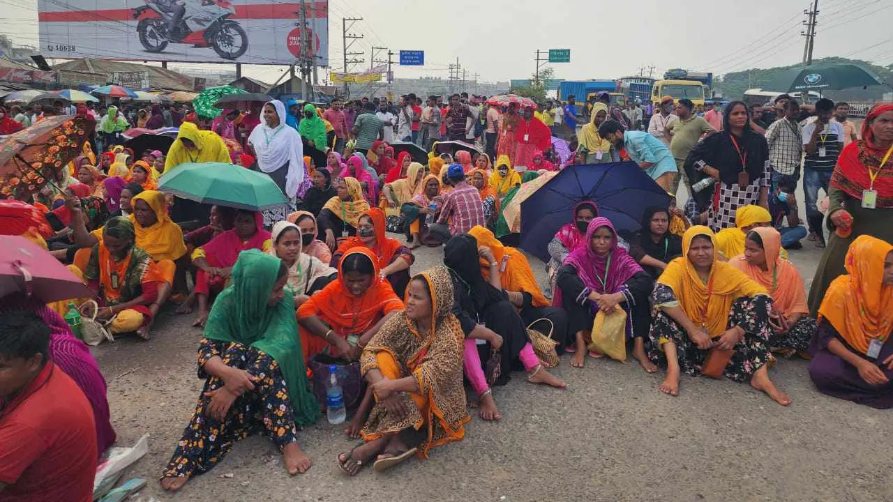 আশুলিয়ায় বকেয়া বেতনের দাবিতে নবীনগর-চন্দ্রা মহাসড়ক অবরোধ