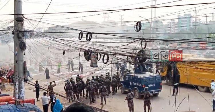 পরে বিকেলে সেনাবাহিনী, শিল্প পুলিশসহ যৌথবাহিনীর সদস্যরা শ্রমিকদের প্রথমে বুঝিয়ে সরিয়ে দিতে চেষ্টা করেন। কিন্তু শ্রমিকরা না মানায় একপর্যায় জলকামান ব্যবহার করে তাদের সড়ক থেকে সরিয়ে দেওয়া হয়।