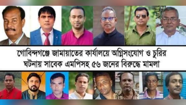 আব্দুল বাতেন লাবু, গাইবান্ধা প্রতিনিধি : গাইবান্ধার গোবিন্দগঞ্জে জামায়াতে ইসলামীর দলীয় কার্যালয়ে অগ্নিসংযোগ ও চুরির ঘটনায় সাবেক সংসদ সদস্য অধ্যক্ষ আবুল কালাম আজাদসহ ৫৬ জনের বিরুদ্ধে মামলা করা হয়েছে। এছাড়া মামলায় ১৫০/১৬০ জনকে অজ্ঞাতনামা আসামি করা হয়েছে।