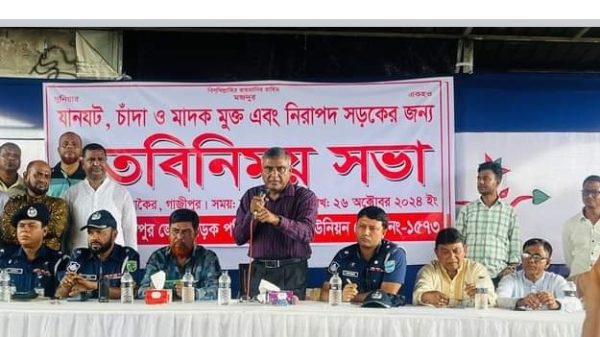 গাজীপুরের কালিয়াকৈরে যানজট চাঁদা ও মাদকমুক্ত এবং নিরাপদ সড়ক নিশ্চিত করতে মতবিনিময় সভা অনুষ্ঠিত হয়েছে। শনিবার দুপুরে গাজীপুর জেলা সড়ক পরিবহন শ্রমিক ইউনিয়নের উদ্যোগে কালিয়াকৈর উপজেলার ঢাকা-টাঙ্গাইল মহাসড়কের চন্দ্রা ত্রিমোর এলাকায় এসভা অনুষ্ঠিত হয়।