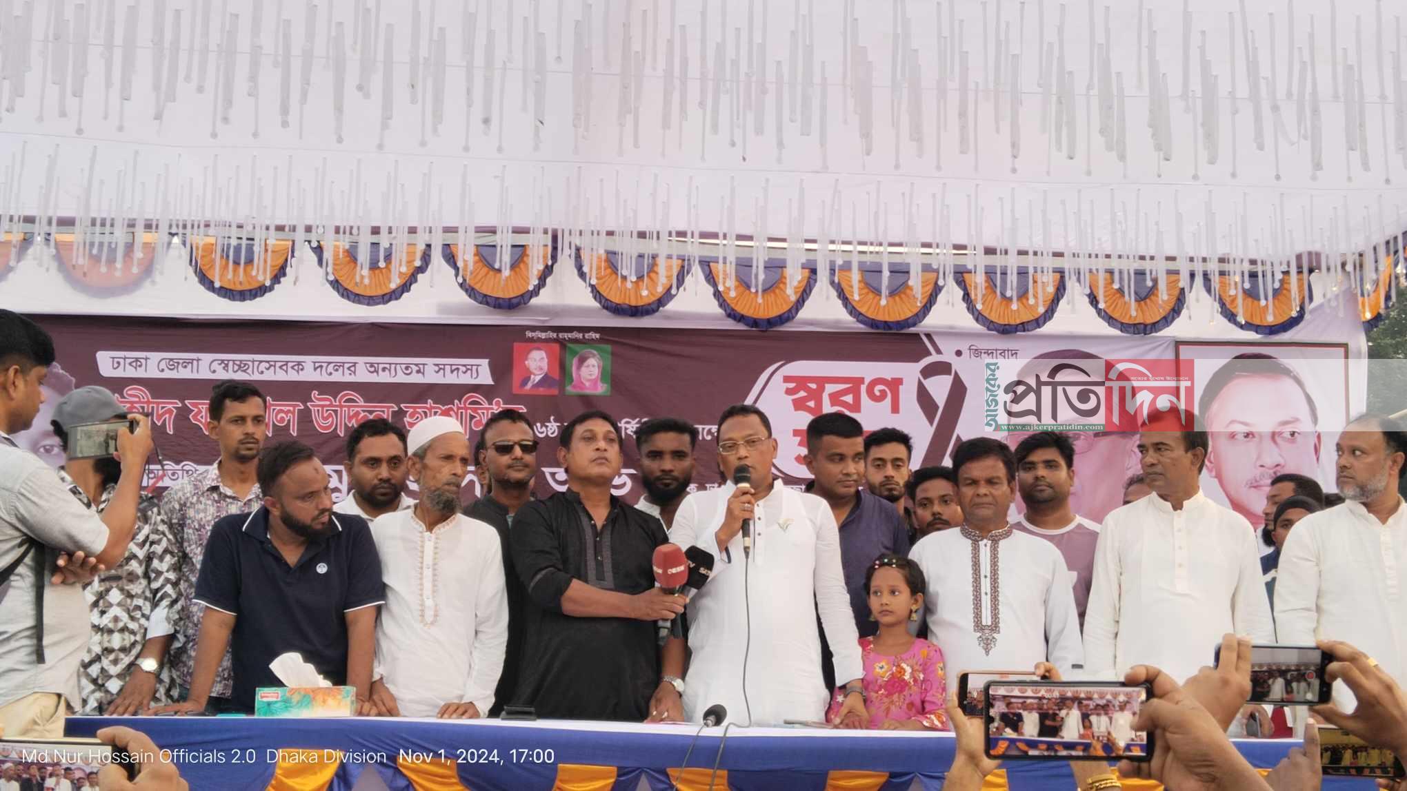 স্বরন সভায় ধামরাই থানা স্বেচ্ছাসেবক দলের আহ্বায়ক আব্দুল মান্নান ফিরোজ এর সভাপতিত্বে প্রধান অতিথি হিসাবে উপস্থিত ছিলেন, ঢাকা জেলা স্বেচ্ছাসেবক দলের আহ্বায়ক নাজমুল হাসান অভি প্রধান অতিথি তার বক্তব্যে বলেন, আওয়ামিলীগ ফ্যাসিট হাসিনা সরকার বেগম খালেদা জিয়া ও তারেক রহমানের নামে মিথ্যা মামলা দিয়ে বিএনপি কে নিশ্চিহ্ন করতে চেয়ে ছিল, শহীদ ফয়সাল উদ্দিন হাশমির হত্যার বিচার ও খুনিদের অবিলম্বে গ্ৰেফতার আওতায় আনা হবে।