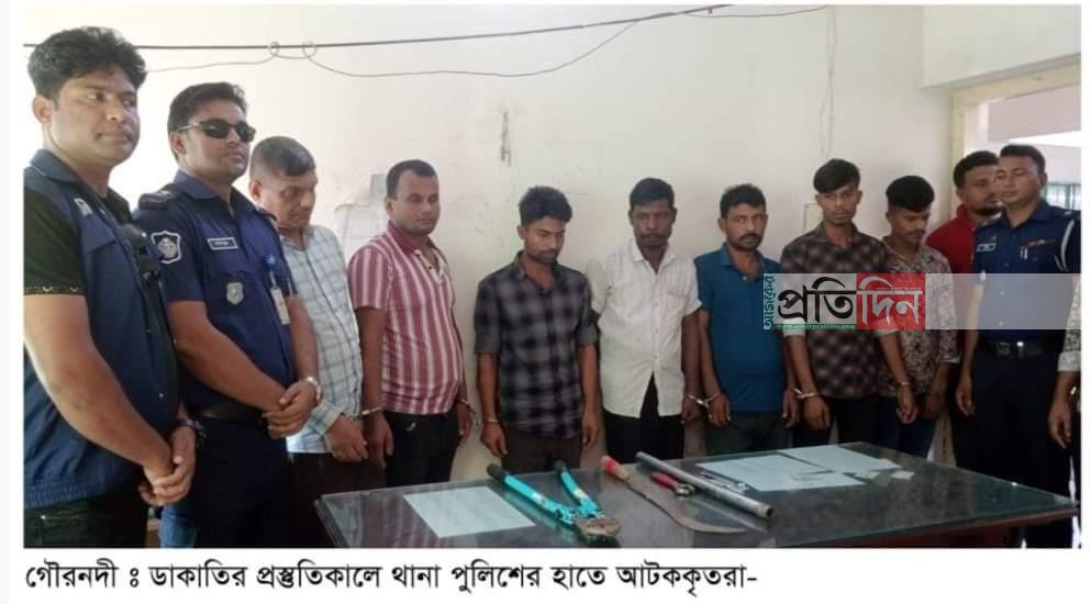 গৌরনদী মডেল থানা অফিসার ইনচার্জ মোঃ ইউনুস মিয়া জানান গোপন সংবাদের ভিত্তিতে। গৌরনদী বাস স্ট্যান্ড সংলগ্ন এলাকা থেকে রবিবার রাত ৩:১৫ মিনিটের সময়। ঢাকাতদের আটক করা হয়।