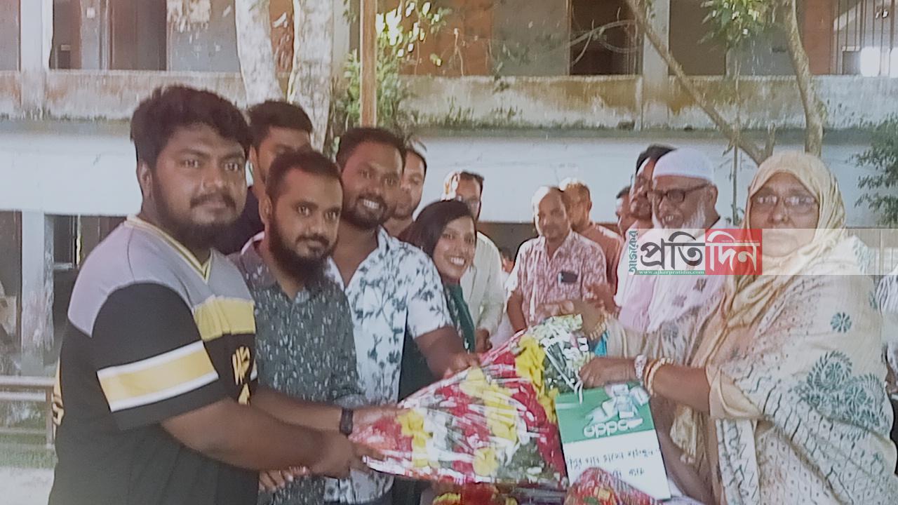 সংবর্ধনায় মানপত্র পাঠ করেন অষ্টম শ্রেণীর ছাত্রী সায়লা আফরোজ।এসময় বিদ্যালয়ের বর্তমান ও সাবেক শিক্ষার্থীরা উপস্থিত হয়ে সম্মাননা স্বরূপ উপহার সামগ্রী প্রদান করেন।