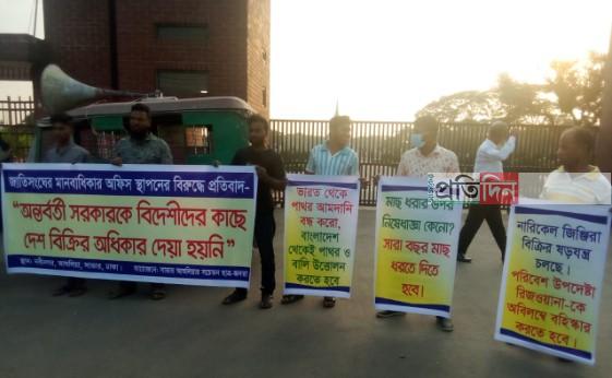 জাতীয় স্মৃতিসৌধের সামনে জাতিসংঘের মানবাধিকার অফিস স্থাপনের প্রতিবাদে মানববন্ধন