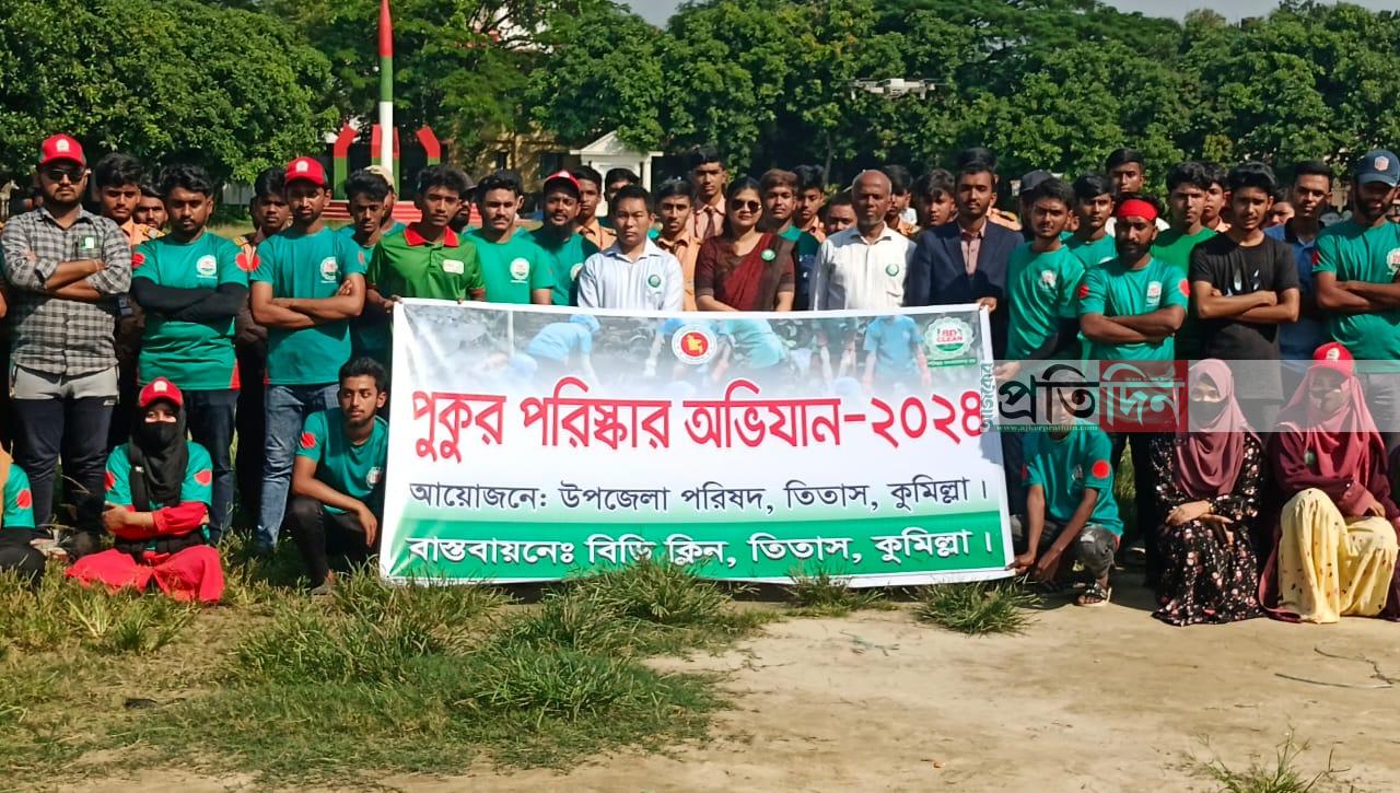 তিতাসে বিডিক্লিনের উদ্যোগে পুকুর পরিস্কার অভিযান