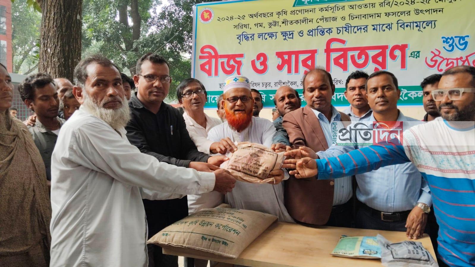 ঠাকুরগাঁওয়ের রাণীশংকৈলে মঙ্গলবার (১৩ নভেম্বর)সকাল ১১ টায় রবি মৌসুমে বিভিন্ন ফসলের উৎপাদন বৃদ্ধির লক্ষ্যে ক্ষুদ্র ও প্রান্তিক কৃষকদের মাঝে কৃষি প্রণোদনা কর্মসূচির আওতায় ৯ হাজার ৬ শত ৫০ জন কৃষককে বিনামূল্যে বীজ ও রাসায়নিক সার বিতরণ কার্যক্রমের উদ্বোধন করা হয়েছে। এ মৌসুমে সরিষা, গম, ভুট্টা, শীতকালীন পেঁয়াজ ও চিনাবাদামের বীজ ও সার বিনামূল্যে এসব ক্ষুদ্র ও প্রান্তিক কৃষকদেরকে দেওয়া হবে।