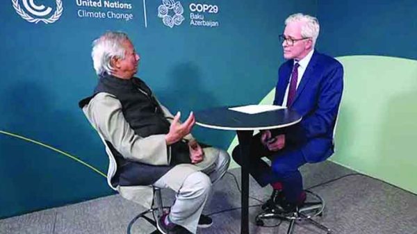 সম্প্রতি আজারবাইজানের রাজধানী বাকুতে অনুষ্ঠিত জাতিসংঘের জলবায়ু সম্মেলনের (কপ-২৯) ফাঁকে কাতারভিত্তিক সম্প্রচারমাধ্যম আল–জাজিরাকে দেওয়া সাক্ষাৎকারে ড. ইউনূস এসব কথা বলেছেন। রোববার (১৭ নভেম্বর) এই ভিডিও সাক্ষাৎকার সম্প্রচার করেছে আল–জাজিরা।
