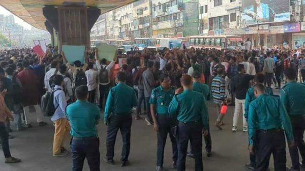 মহাখালীতে রেললাইন অবরোধ করেছে তিতুমীরের শিক্ষার্থীরা