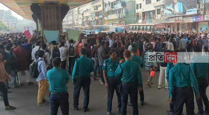 মহাখালীতে রেললাইন অবরোধ করেছে তিতুমীরের শিক্ষার্থীরা