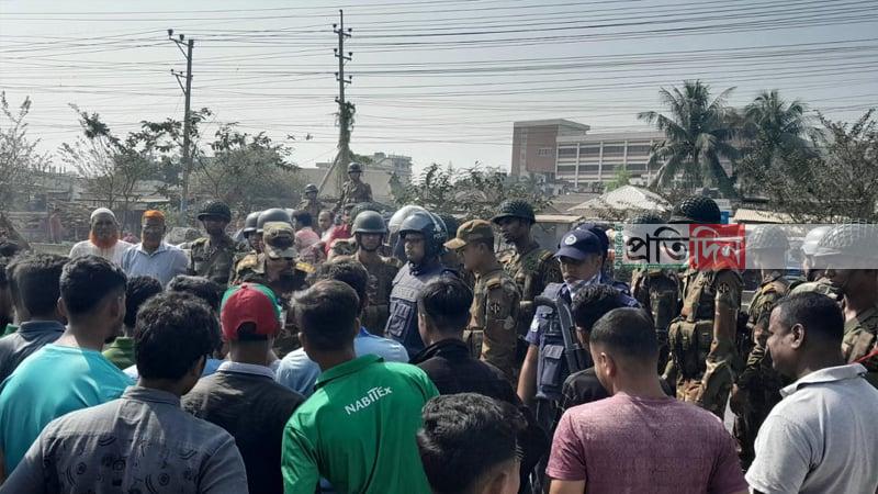বেতনের দাবিতে ৪র্থ দিনের মতো বেক্সিমকোর শ্রমিকদের চন্দ্রা–নবীনগর মহাসড়ক অবরোধ
