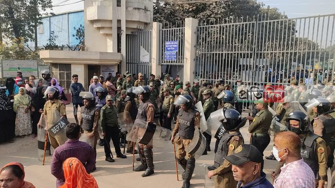 বকেয়া পাওনাসহ বিভিন্ন দাবিতে নবীনগর-চন্দ্রা মহাসড়ক অবরোধ করে শ্রমিকদের বিক্ষোভ