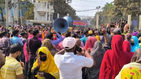 আশুলিয়ায় বকেয়া বেতনের দাবিতে দ্বিতীয় দিনের মতো শ্রমিকদের নবীনগর-চন্দ্রা মহাসড়ক অবরোধ