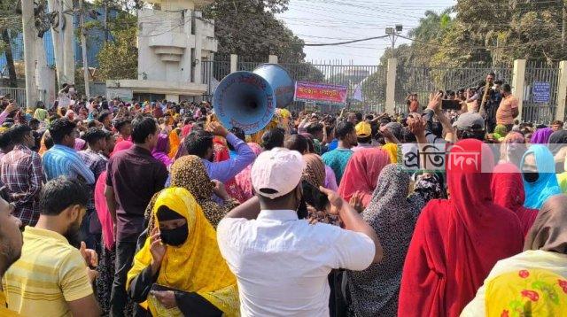 আশুলিয়ায় বকেয়া বেতনের দাবিতে দ্বিতীয় দিনের মতো শ্রমিকদের নবীনগর-চন্দ্রা মহাসড়ক অবরোধ