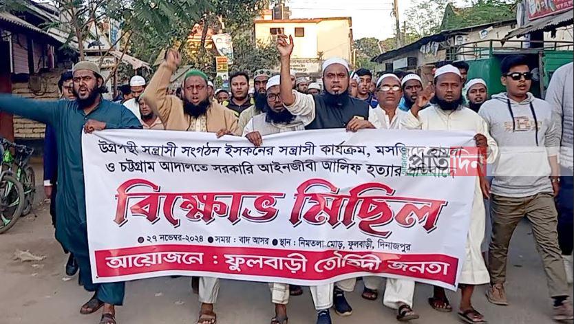 চট্রগ্রাম আদালতে সরকারি আইনজীবি আলিফ হত্যার প্রতিবাদে ফুলবাড়ীতে বিক্ষোভ মিছিল অনুষ্ঠিত