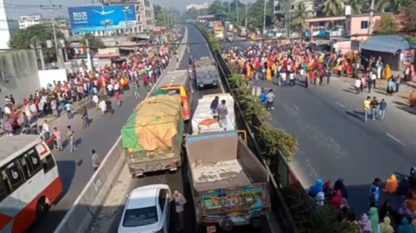 এর আগে বৃহস্পতিবার (২৮ নভেম্বর) সকাল ১০টার দিকে বকেয়া বেতনের দাবিতে শ্রমিকরা বিক্ষোভ ও মহাসড়কটি অবরোধ করেন।