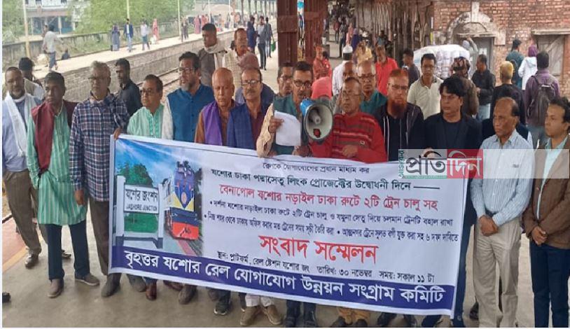 সংবাদ সম্মেলনে লিখিত বক্তব্যে বৃহত্তর যশোর রেল যোগাযোগ উন্নয়ন সংগ্রাম কমিটির সদস্য সচিব ইঞ্জিনিয়ার রুহুল আমিন বলেন, ‘যশোর-ঢাকা-পদ্মাসেতু লিংক প্রোজেক্টের উদ্বোধনী দিনে বেনাপোল-যশোর-নড়াইল-ঢাকা রুটে ২টি ট্রেন চালুসহ দর্শনা-যশোর-নড়াইল-ঢাকা রুটে ২টি ট্রেন চালু, নিজ শহর থেকে প্রতিদিন ঢাকায় অফিস করার জন্য ট্রেনের সময় সূচী তৈরি করা, আন্তঃনগর ট্রেনে সুলভ বগী যুক্ত করা, ট্রেনের ভাড়া বাস ভাড়া থেকে কম রাখা, ট্রেনের টিকিট প্রাপ্তির সহজ পদ্ধতি চালু করা, সিনিয়র সিটিজেনদের জন্য বিশেষ ব্যবস্থা রাখা এবং দর্শনা-খুলনা রেলপথকে দ্রুত ডবল করাসহ ছয় দফা দাবিতে দীর্ঘদিন ধরে আন্দোলন সংগ্রাম করে চলেছি।
