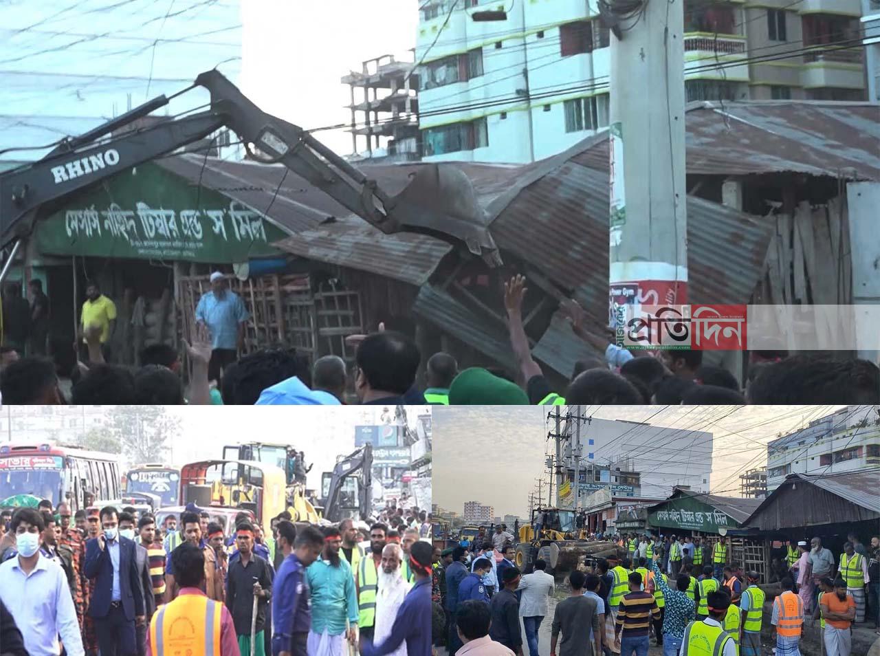 সাভারে মহাসড়কের উভয় পাশের প্রায় ২ হাজার অবৈধ স্থাপনা উচ্ছেদ, বাধা দেয়ায় আটক ৩
